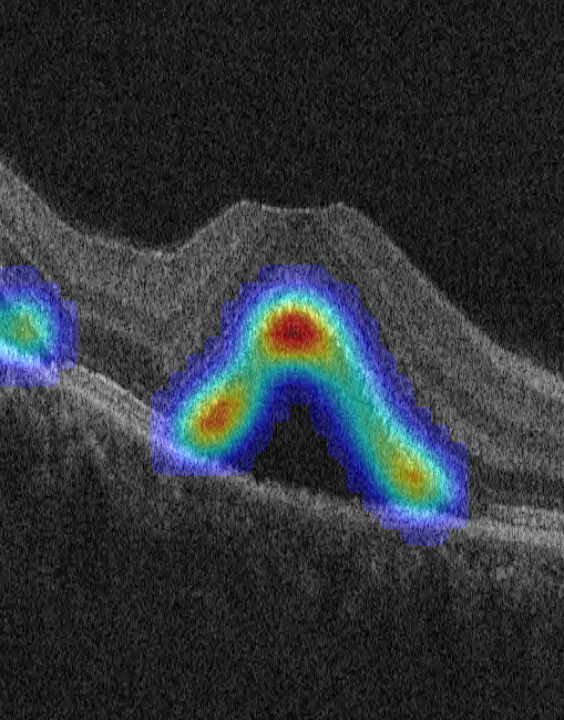 Most automated segmentation approaches for quantitative assessment of sub-retinal fluid regions rely heavily on retinal anatomy knowledge (e.g. layer segmentation) and pixel-level annotation, which requires excessive manual intervention and huge learning costs. In this paper, we propose a weakly supervised learning method for the quantitative analysis of lesion regions in spectral domain optical coherence tomography (SD-OCT) images. Specifically, we first obtain more accurate positioning through improved class activation mapping; second, in the feature propagation learning network, the multi-scale features learned by the slice-level classification are employed to expand its activation area and generate soft labels; finally, we use generated soft labels to train a fully supervised network for more robust results. The proposed method is evaluated on subjects from a dataset with 23 volumes for cross-validation experiments. The experimental results demonstrate that the proposed method can achieve encouraging segmentation accuracy comparable to strong supervision methods only utilizing image-level labels.